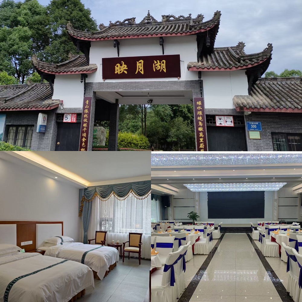 映月湖五星级乡村酒店(暨中国西部枇杷博览园)地处成都市天府新区东山大道三段(永兴镇),距成都市区30余公里。该酒店是以传统文化为主题,是集婚宴、寿宴、会议、休闲、拓展、旅游为一体。是成都为数不多的五星级乡村酒店。酒店为川西民居式建筑,古朴典雅,与苍翠的青山及清澈的湖水珠联璧合,四季花开、五彩斑斓,使人感到犹如置身世外仙境。店餐厅宽敞明亮,可供1000余人同时用餐,并备有风格各异的豪华包间。客人可在清新、优雅的环境中享用美味佳肴;酒店各种规格的茶坊、机麻包间环境优美;客房有118套房间,环境舒适温馨,使客人体验到家的感觉;大中小会议室9个,音响、话筒、投影等现代化设备完善;湖畔草坪是您举行婚礼和拓展的绝佳选择,高空、水上、地面、CS等拓展训练场地环境绝佳,是您开展拓展训练活动的理想场所!