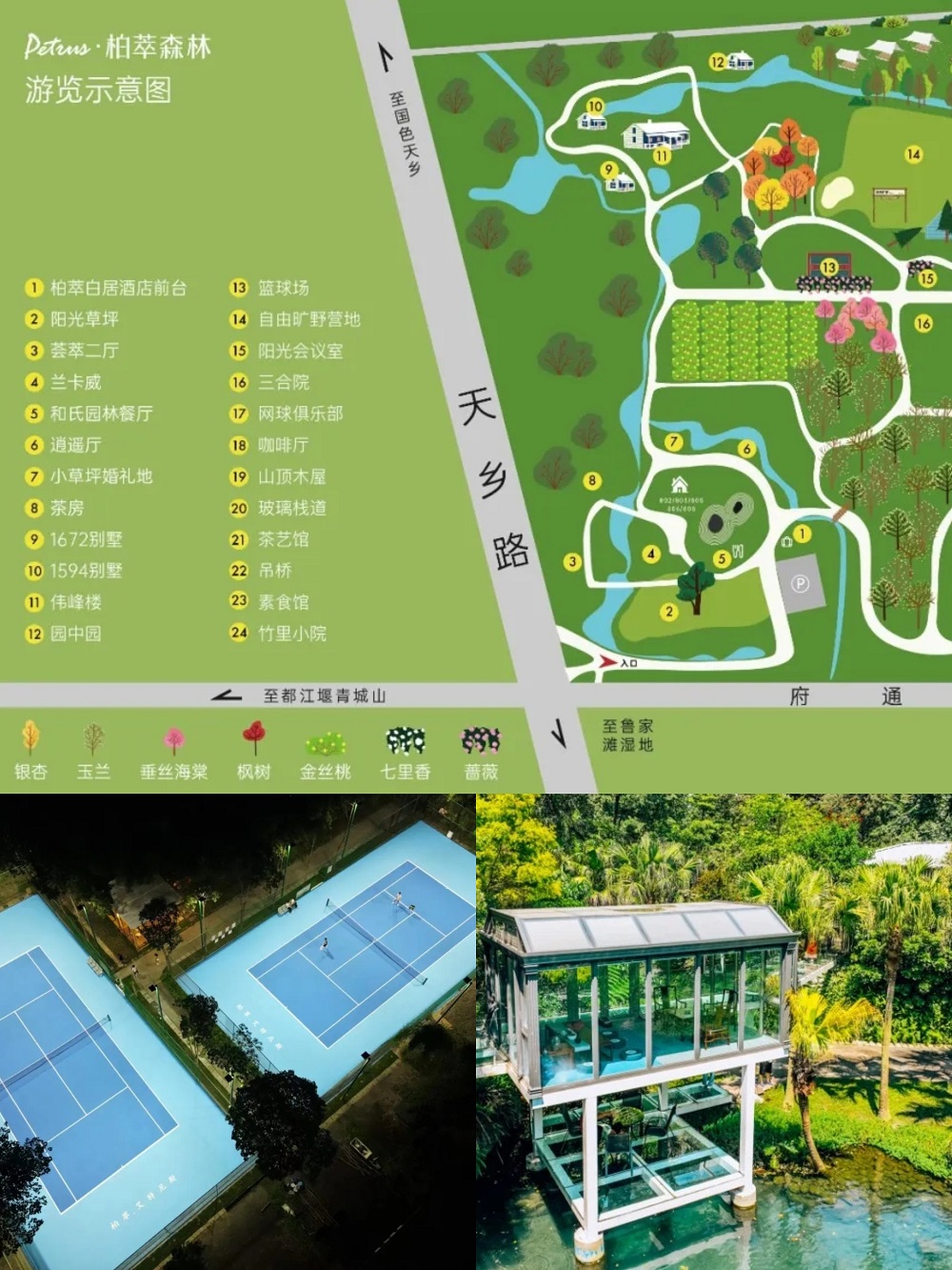 柏萃度假酒店是打造的一个园林式度假酒店,酒店坐落在600亩森林公园内,已打造完成精品餐饮区、婚庆文化中心、度假木屋区、茶艺文化区、运动会所区、民宿客栈区、长城优品生活馆、天府观景植物园。柏萃白居度假酒店设中餐厅可同时容纳500人用餐,700㎡高品质的真草婚庆场地。